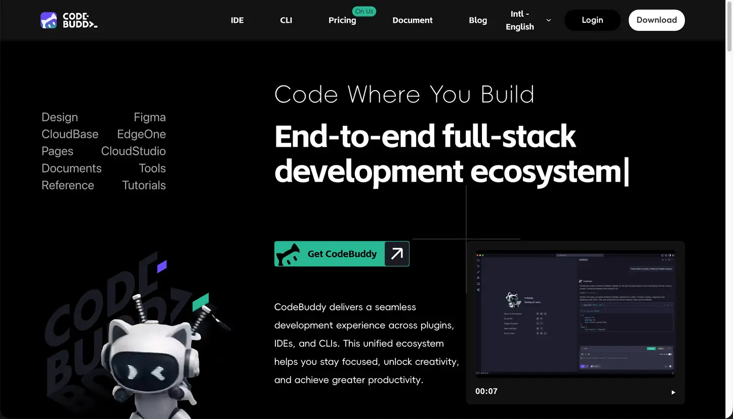 CodeBuddy integrates AI with your development process, providing a full-stack development ecosystem with plugins, IDE, and CLI. It offers seamless collaboration and productivity features across different coding environments. Whether you're coding, extending, or collaborating, CodeBuddy empowers you to reach peak efficiency.