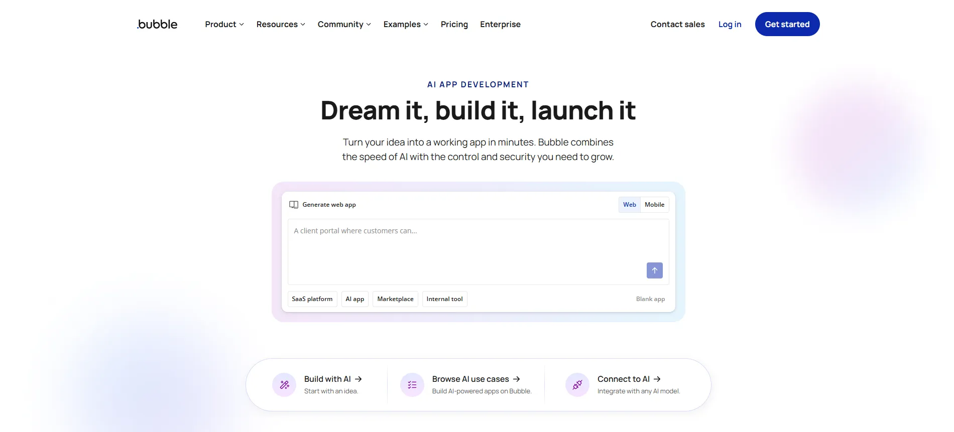 Turn your idea into a working app in minutes. Bubble combines the speed of AI with the control and security you need to grow.